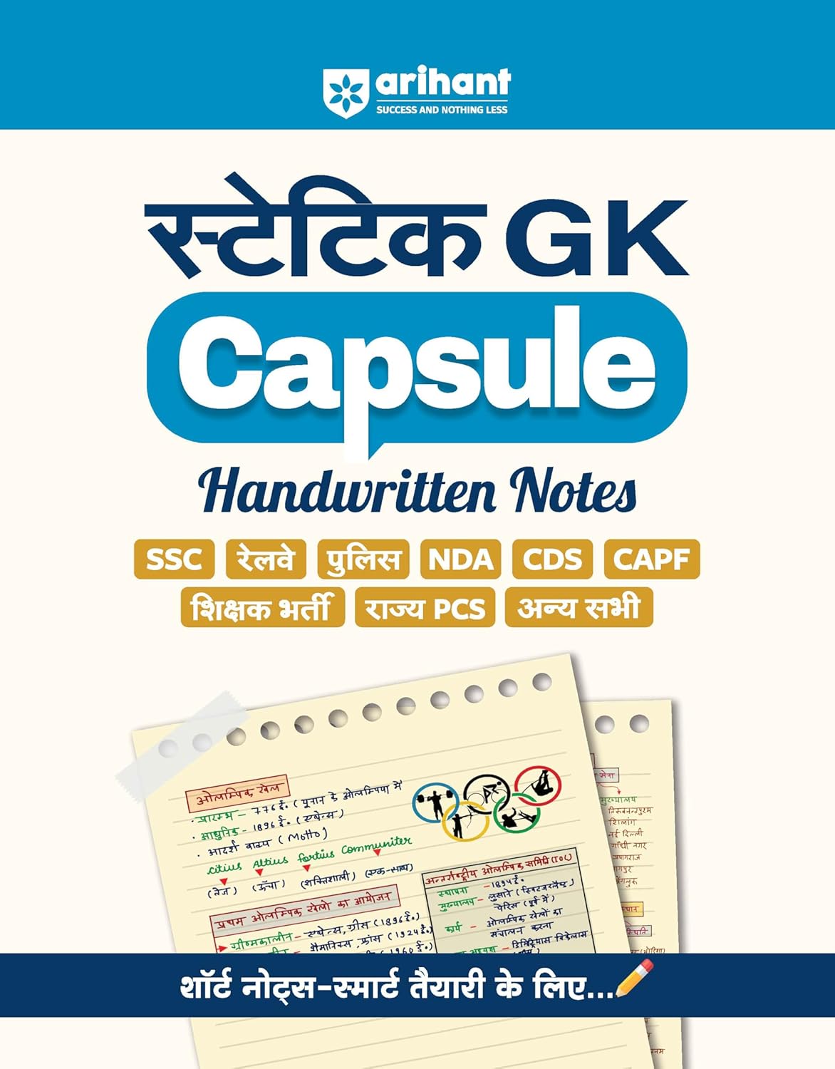 Arihant Capsule Handwritten Notes Combo Set of 6 Books Rajvyavastha Itihas Static GK Arthvyavastha Bhugol Vigyan 2025-2026 Hindi Medium for SSC Railway Police NDA CDS CAPF and All Other Competitive Exams