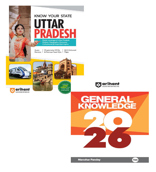 Arihant's Know Your State Uttar Pradesh and General Knowledge 2026 Combo in English Medium offers in-depth preparation for UP-specific and all-India exams. Authored by Manohar Pandey, this 2-book set is a top choice for UPSC, UPPSC, SSC, NDA, and government job aspirants preparing in English.