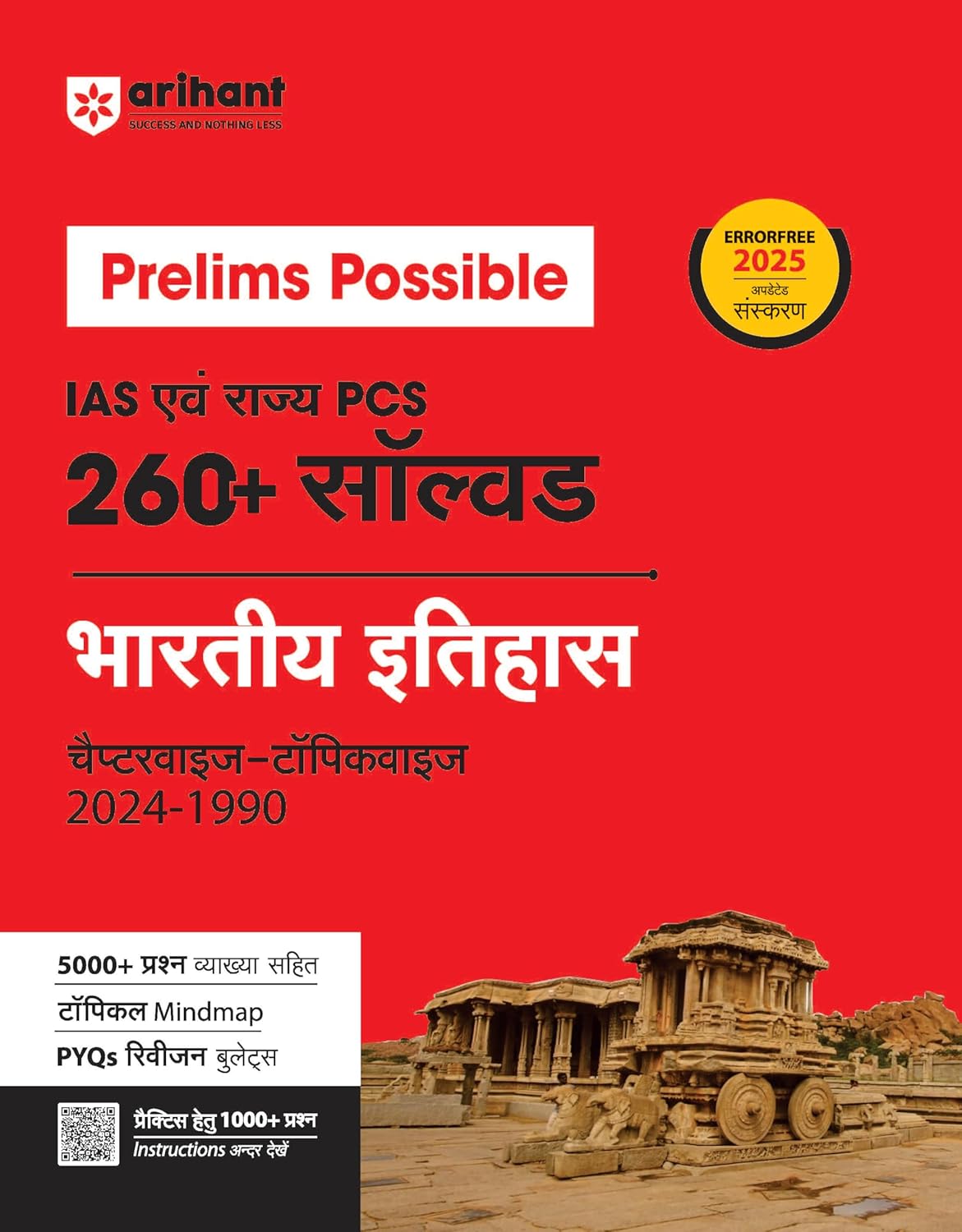 Arihant Prelims Possible IAS and State PCS Bharatiya Itihas 260+ Solved Solved Papers 1990-2024 Chapterwise Topicwise 2025 Updated Edition