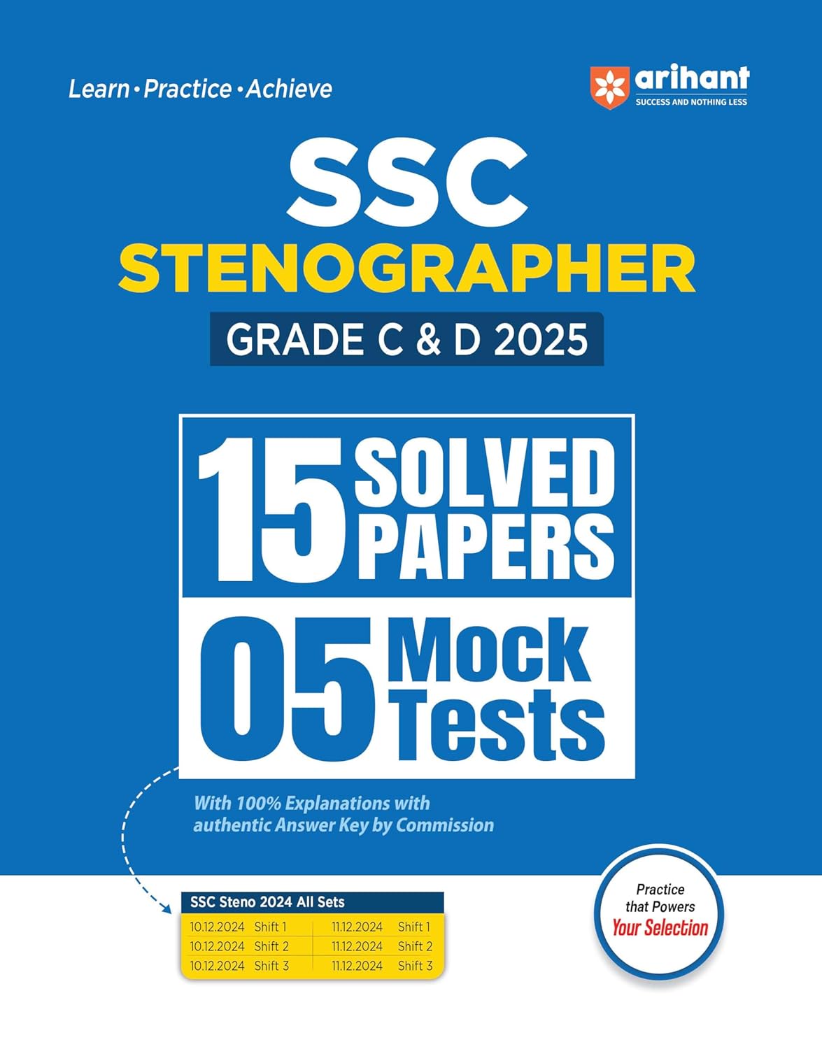 - Arihant 15 Solved Papers + 5 Mock Tests Steno
