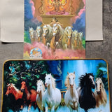 Bhagwan Surya Ke सात घोड़ों की पेंटिंग Aur नवग्रह, Navgrah Book, सात घोड़ों की पेंटिंग With Crystal Photo 7 Horses Ready to Golden Frame Picture 9x12 Inch, Wall Decor for & Office & House Warming Gift