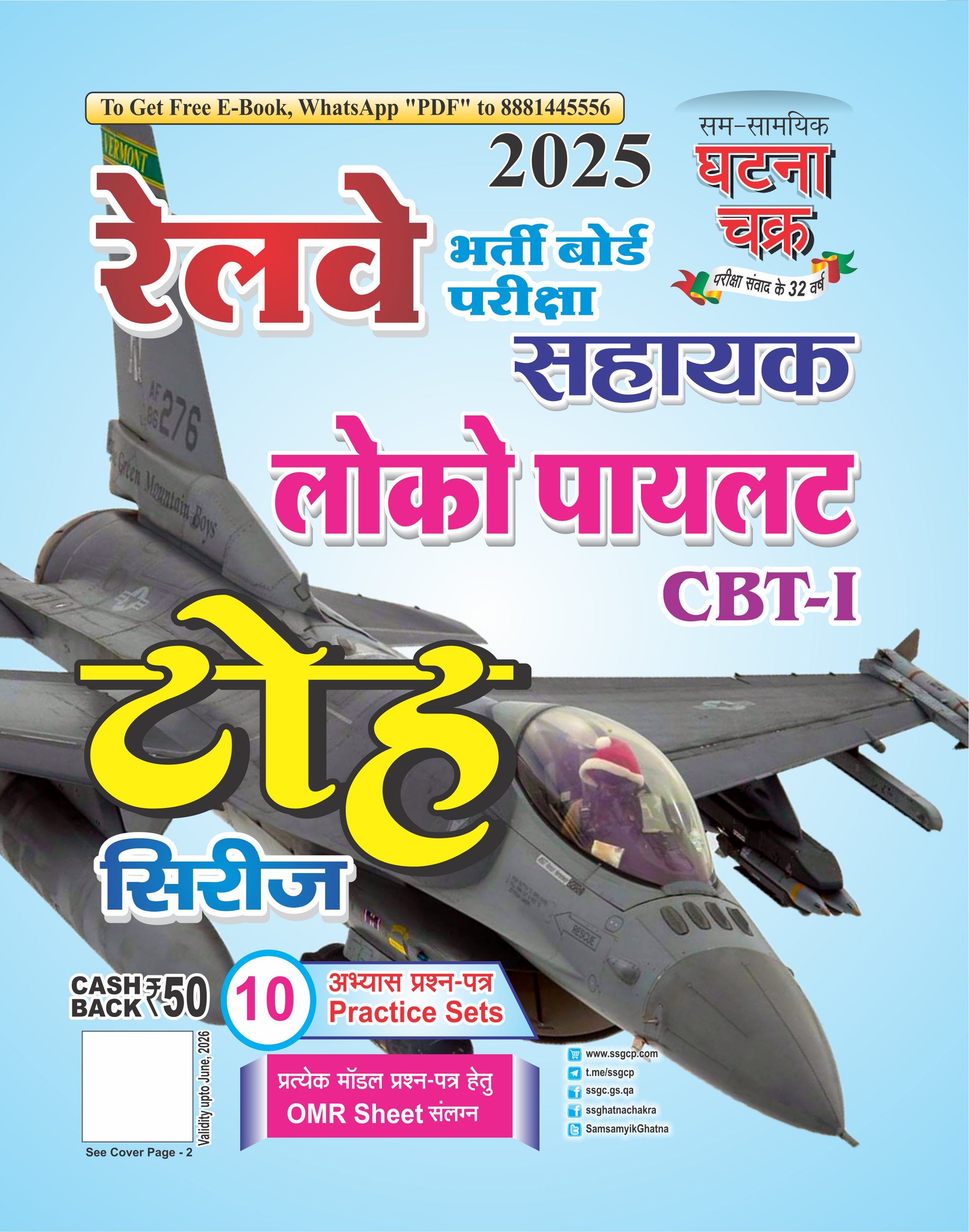 Ghatna Chakra RRB ALP Sahayak Loco Pilot 2025 CBT-1 TOH Series provides 10 full-length practice sets designed as per the latest Railway Recruitment Board (RRB) pattern. This Hindi medium guide by Team SSGCP is crafted for aspirants preparing for the Assistant Loco Pilot CBT-1 exam in 2025.