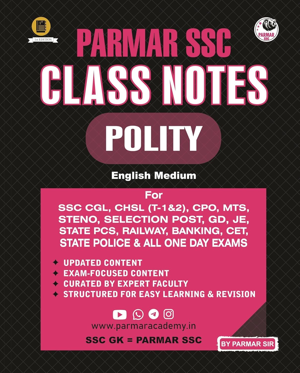 Parmar SSC Class Notes Polity By Parmar Sir English Medium For SSC CGL CHSL GD JE State Police And All One Day Exams