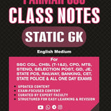 Parmar Static GK Class Notes – English Medium is a comprehensive and concise book by Parmar Sir, tailored for aspirants of SSC CGL, CHSL, GD, JE, State Police, and other one-day competitive exams. This book focuses on Static General Knowledge, covering important facts, data, and one-liner questions frequently asked in SSC exams.