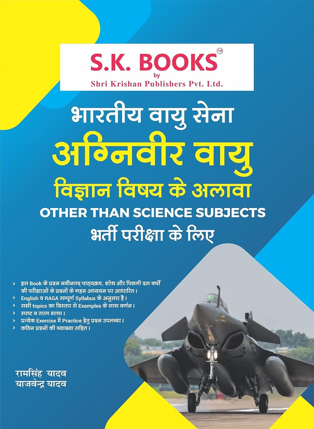 SK Books Indian Air Force Agniveer Vayu Exam Guide 2025 is specially designed for candidates appearing in the Non-Science Subjects category. Written in Hindi Medium by Ram Singh Yadav, this book is a complete preparation resource for the Agniveer Airforce recruitment exam.