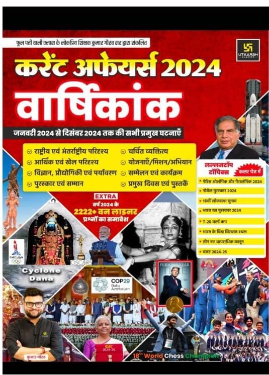 Utkarsh Current Affairs Varshikank Yearly 2024 January 2024 To December 2024 With Extra Covering 2222+ One Liner Questions By Kumar Gaurav Hindi Medium