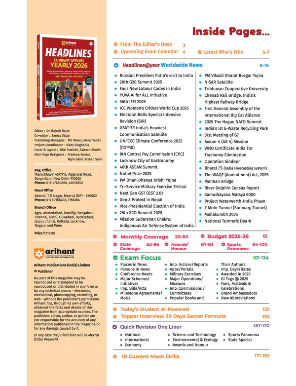 - Title: Arihant Headlines Current Affairs Yearly 2026 – 360° Review of Jan–Dec 2025