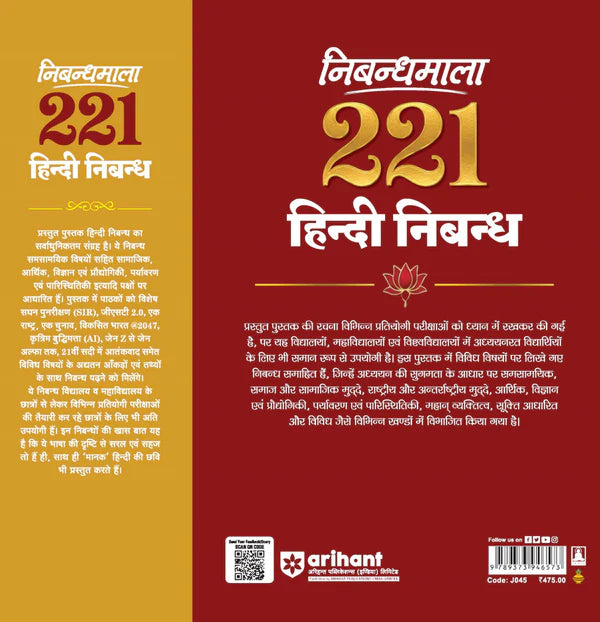 - Title: Arihant Nibandhmala 221 – Hindi Essays on Social, National, Scientific & Contemporary Topics