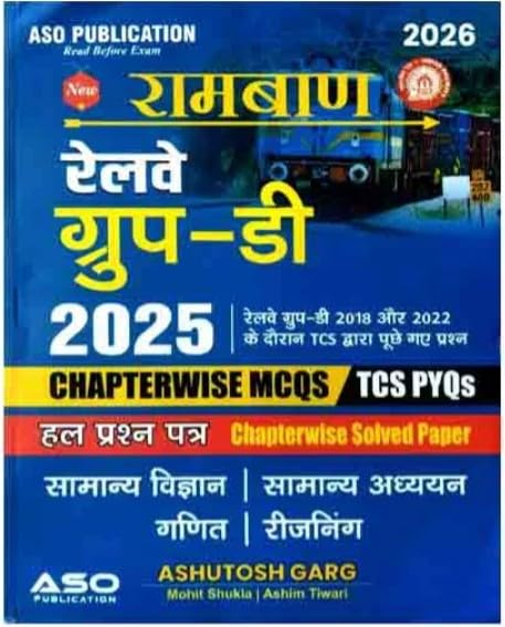 Published by ASO Publication, this Hindi Medium book is designed to help candidates understand the exam trends and practice effectively for success in the upcoming Railway Group D recruitment exams (2025–2026).