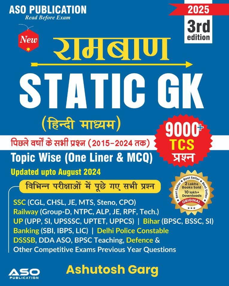 ASO Ramban Static GK 2025 Hindi Medium 3rd Edition 9000+ TCS Questions Topicwise One Liner and MCQ By Ashutosh Garg