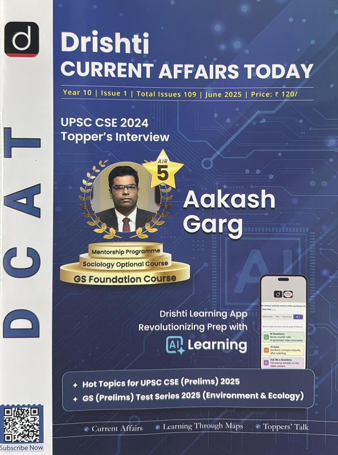 The Drishti Current Affairs Today June 2025 is a monthly English magazine covering major national and international events, government policies, and exam-focused analysis. Ideal for UPSC, State PCS, SSC, Banking, and other competitive exams.