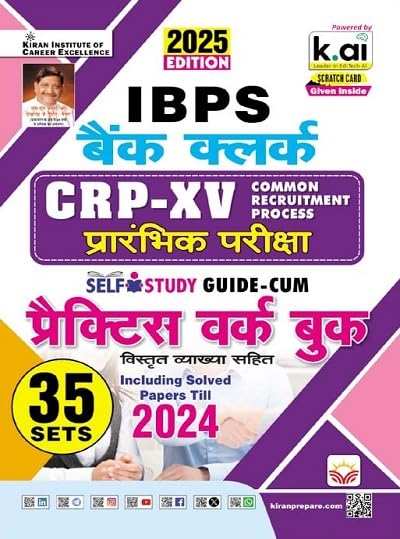 Kiran IBPS Bank Clerk CRP-XV Prelims Exam 2025 Self Study Guide-Cum Practice Work Book (35 Sets) is designed for aspirants preparing for IBPS Clerk CRP-XV Prelims 2025. This Hindi Medium guide includes 35 full-length practice sets and comprehensive coverage of the latest exam pattern. Authored by Team Kiran Competition Times and published under Book Code K 5465, the book spans 664 pages of exam-focused content.