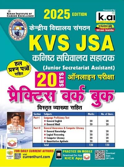 KIRAN KVS JSA Junior Secretariat Assistant Practice Work Book Including Solved Papers 2025 Edition Hindi Medim 5389