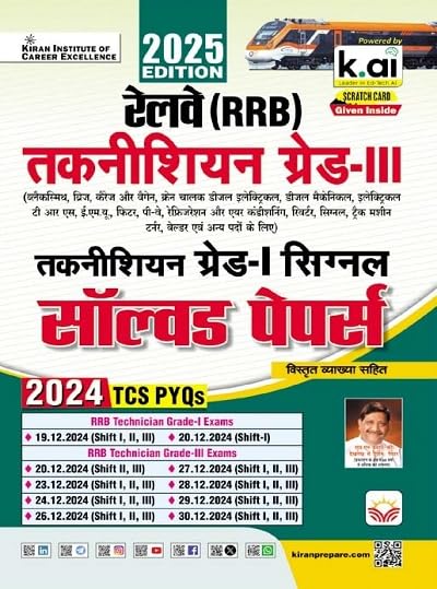 Kiran Railway RRB Technician Grade-III and Grade-I Signal 2025 Exam Solved Papers 27 Sets TCS PYQs 2024 Hindi Medium