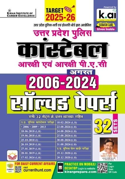 Kiran UP Police Constable & PAC & Jail Warder 2006 to 2024 August Solved Papers Total 32 PYQs 2025 Edition Hindi Medium 5361