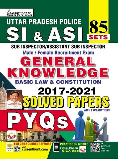Kiran UP SI & ASI General Knowledge 2017 To 2021 Solved Papers Total 85 PYQs English Medium 4642
