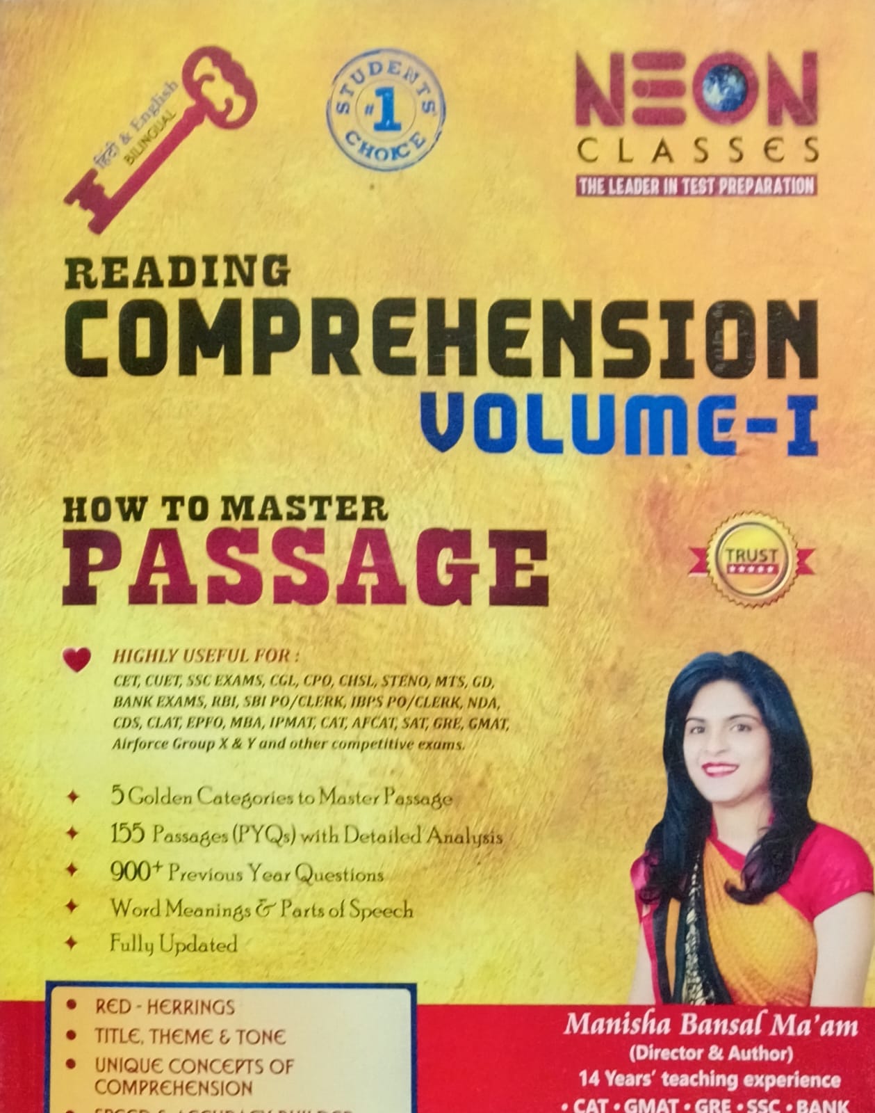 Reading Comprehension Volume-1: How to Master Passage by Manisha Bansal is a top-rated bilingual guide published by Neon Classes. Perfect for students aiming to strengthen their comprehension skills through structured strategies and exam-oriented passages.