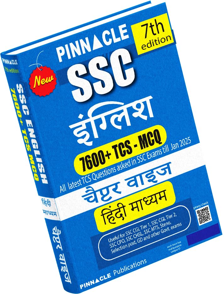 Pinnacle SSC English 7600+ TCS MCQ Chapterwise Till January 2025 Hindi Medium 7th Edition is a comprehensive practice guide for SSC exams including CGL, CHSL, CPO, MTS, and GD. This book covers 7600+ objective questions arranged chapterwise, based on the latest TCS exam pattern.