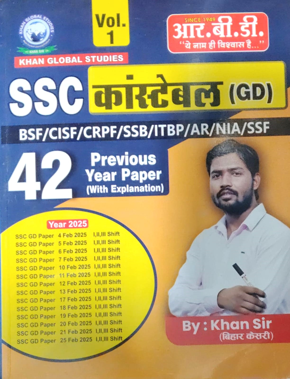 - Title: RBD SSC GD Constable Vol 1 & 2 – Previous Year Papers with Explanation – Global Studies by Khan Sir