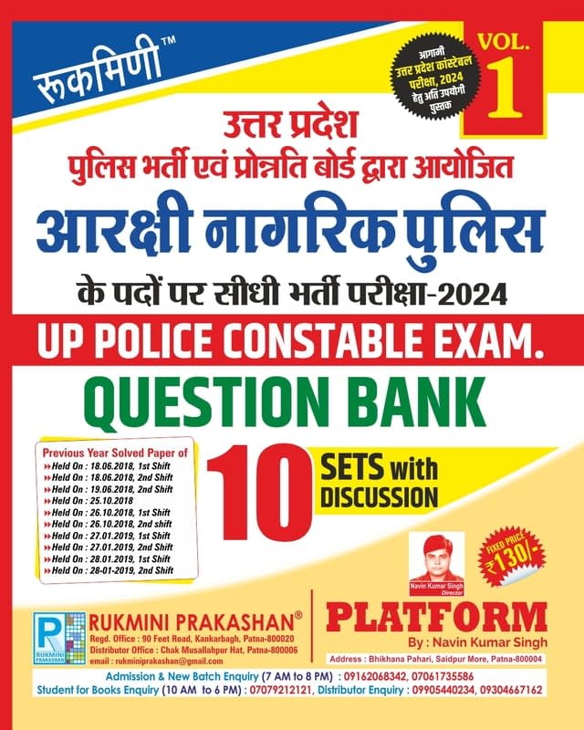 - Rukmini UP Police Constable Question Bank 2025 Vol 1