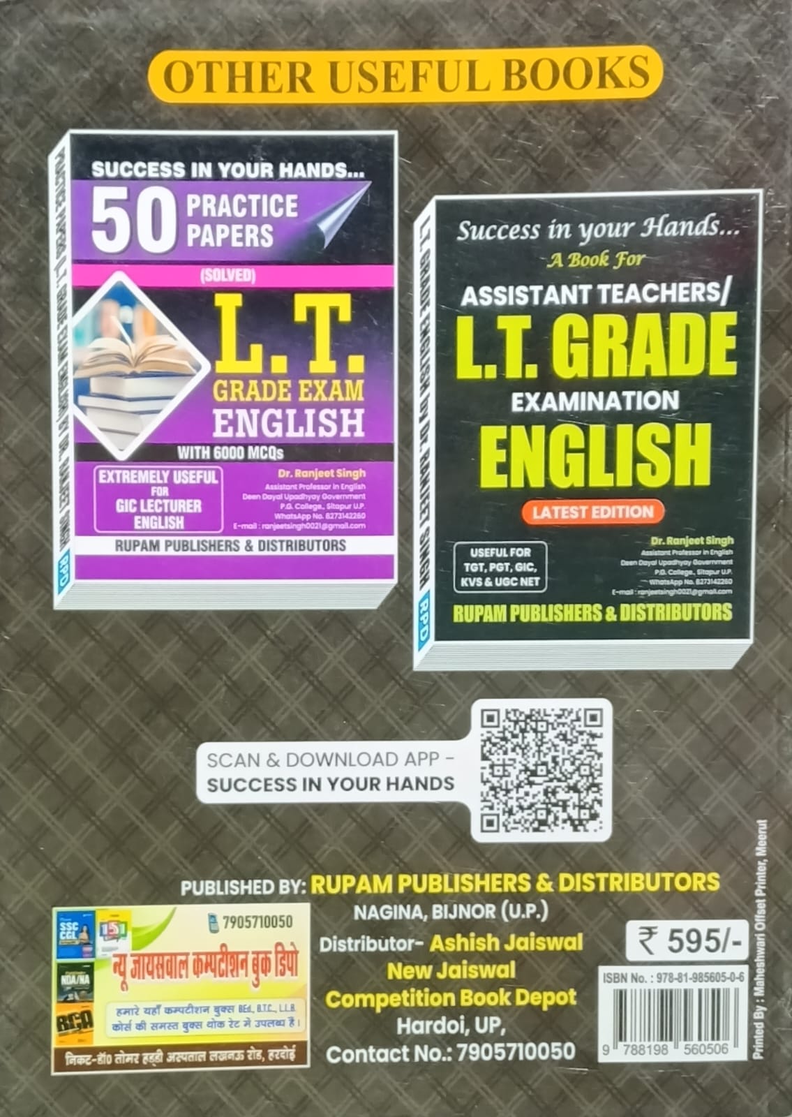 Rupam LT Grade Main Exam 2026 English Complete Book By Dr Ranjeet Singh is a comprehensive exam preparation resource authored by Dr Ranjeet Singh. Published by Rupam Publishers and Distributors, this English medium book provides 400 pages of structured study material tailored for LT Grade Main Exam aspirants.