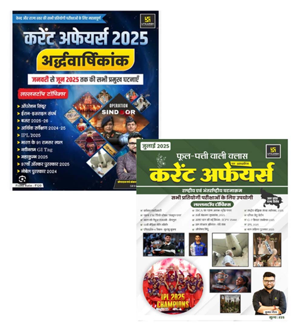 Utkarsh Current Affairs 2025 Ardhvarshikank January-June 2025 Half Yearly With Monthly Current Affairs July 2025 Combo Set of 2 Books